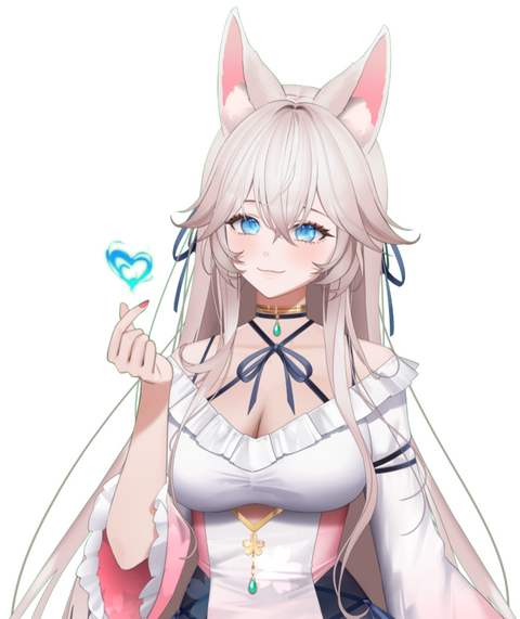 You can find the video here: Lore VideoA small white fox is imbued with a magical gift to stop an eternal winter and save spring. She transforms into a kitsune with snow-white fur and hair. With her new powers Kimuari uses her azure flames, turning the winter into spring everywhere she goes, leaving flowers blooming and cherry blossoms filling the air.However, people react with fear when they see her, prompting her to change her appearance in hopes that people would fear her less. turning her hair from white to brown, while her tail and ears retain their original white tips.Adopting the name Kimuari, she spreads the essence of spring by creating small groves wherever she goes, becoming the Guardian of Spring though people still keep their distance. One day Kimuari discovers streaming and meets her sweet friends who give her confidence and endless love.